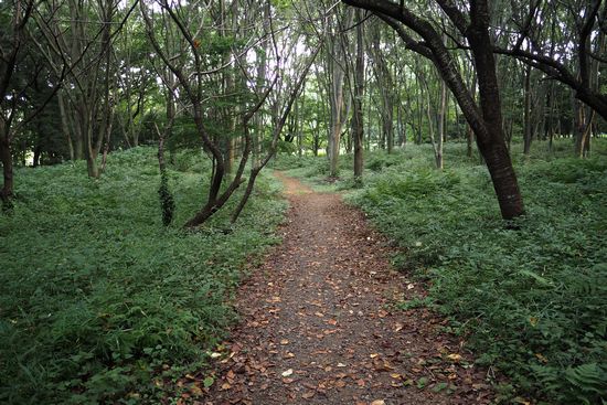 公園内の遊歩道。森として見ると、樹々はまだ若く、趣に欠けます。