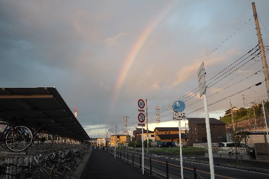 佐倉ふるさと広場あたりから路面が濡れていました。通り雨が降ったようです。物井駅で虹が見えました。