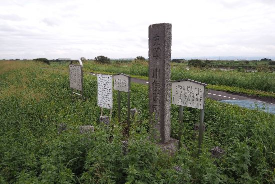 昭和橋まで来ました。橋のたもとに、川俣関所跡の石碑が建っています。