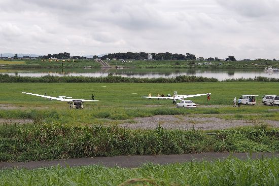 赤岩渡船場近くの妻沼滑空場。グライダーが丁度、着陸するのを見ました。