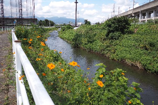 右に上越新幹線を見ながら井野川沿いを辿ります。この流域、キバナコスモスが多く咲いています。
