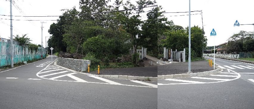 大津川から観音寺に着きました。写真見ずらいですが、2枚の写真を繋いでいます。中央の木立が観音寺。