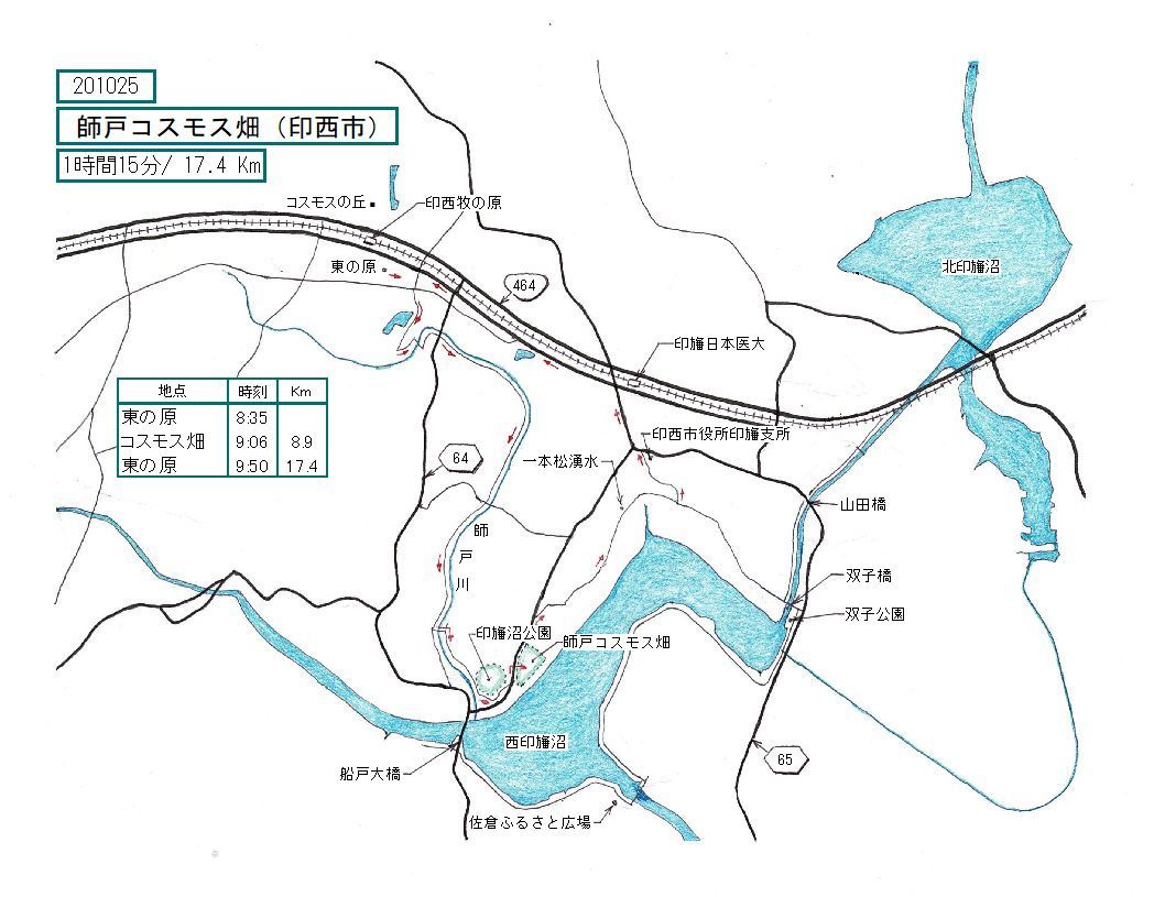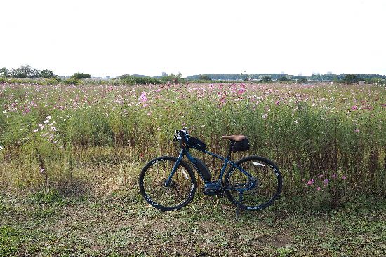 印旛沼公園のある台地の下を通り、師戸のコスモス畑に着きました。花の最盛期は過ぎていました。
