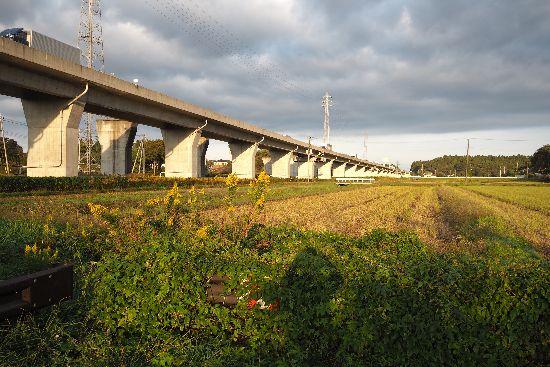 いつもの桂川谷津道です。あみプレミアムアウトレットの横から、西に向かう圏央道を撮っています。