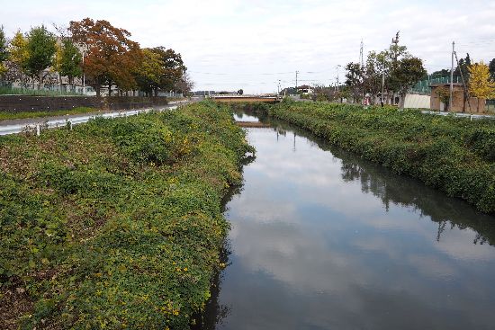 帰途、蓮沼川から谷田川を下ってきて、ここは谷田部という地区です。谷田川の下流方向を撮ってい