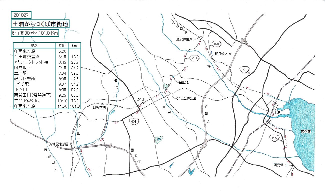 つくば駅からの帰路は、蓮沼川、谷田川、西谷田川を通る、やや玄人向きのルートをとりました。