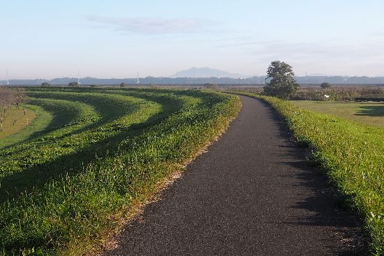 土手の縞模様がおもしろいですね。