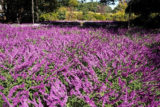 園内は、今の季節は、このアメジストセージ(シソ科サルビア属)の花で溢れておりました。30万本あるとか。
