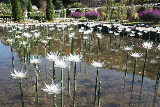 蓮の池にセットされたのは、白い蓮ではなく、これもまたLED電球です。その総数は500満球とか。昼間眺める