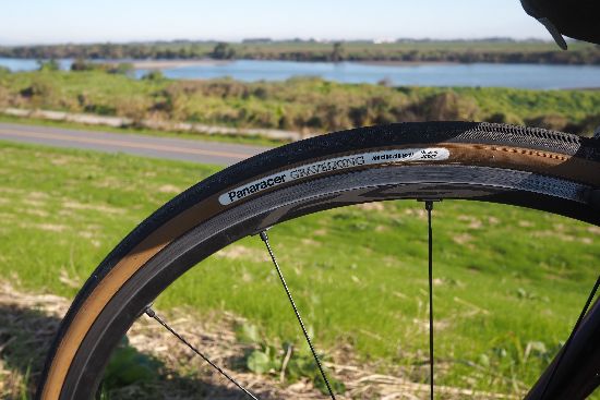来よりちょっと太いタイヤにしてみました。茶サイドです。エアボリュームが増えたので、空気圧も10psiほど低くし