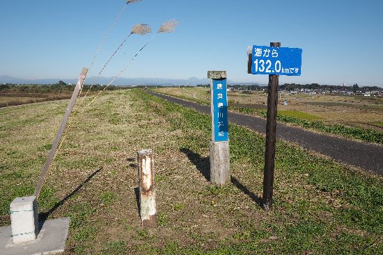 利根川左岸を進むと、渡良瀬川起点という標識が現れ、ここからは渡良瀬川沿いとなります。