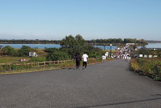 集結していました。サイクリングロードも人であふれていました。これでは走れない〜。