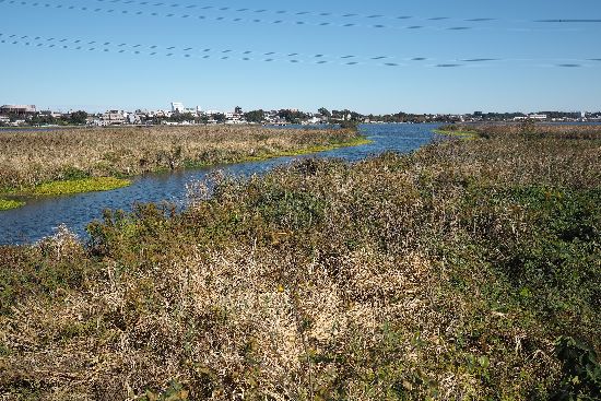 手賀川の自転車道から下手賀川の合流部を撮りました。