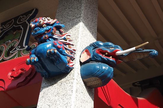 本堂の柱はコンクリートです。装飾も、材質はわかりませんが、陶器のような艶のあるものでした。