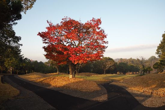 途中、東関道を挟んで両側にグリッサンドゴルフクラブがあります。そこで見かけた印象的な紅葉です。
