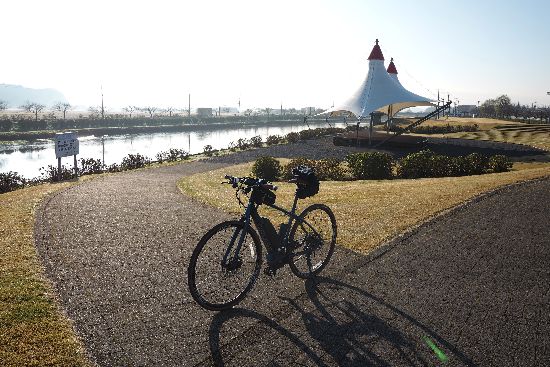 いを走って、河口まで行ってみました。道の駅・多古から河口まで20キロありました。部分的に未舗装なので、ロードバ