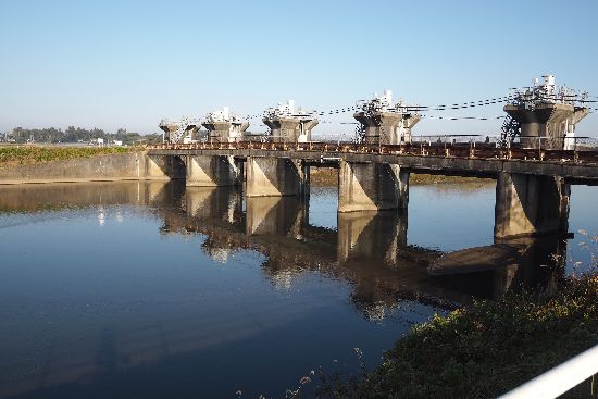 道の駅から右岸をやってきて、この水門で左岸に渡ります。