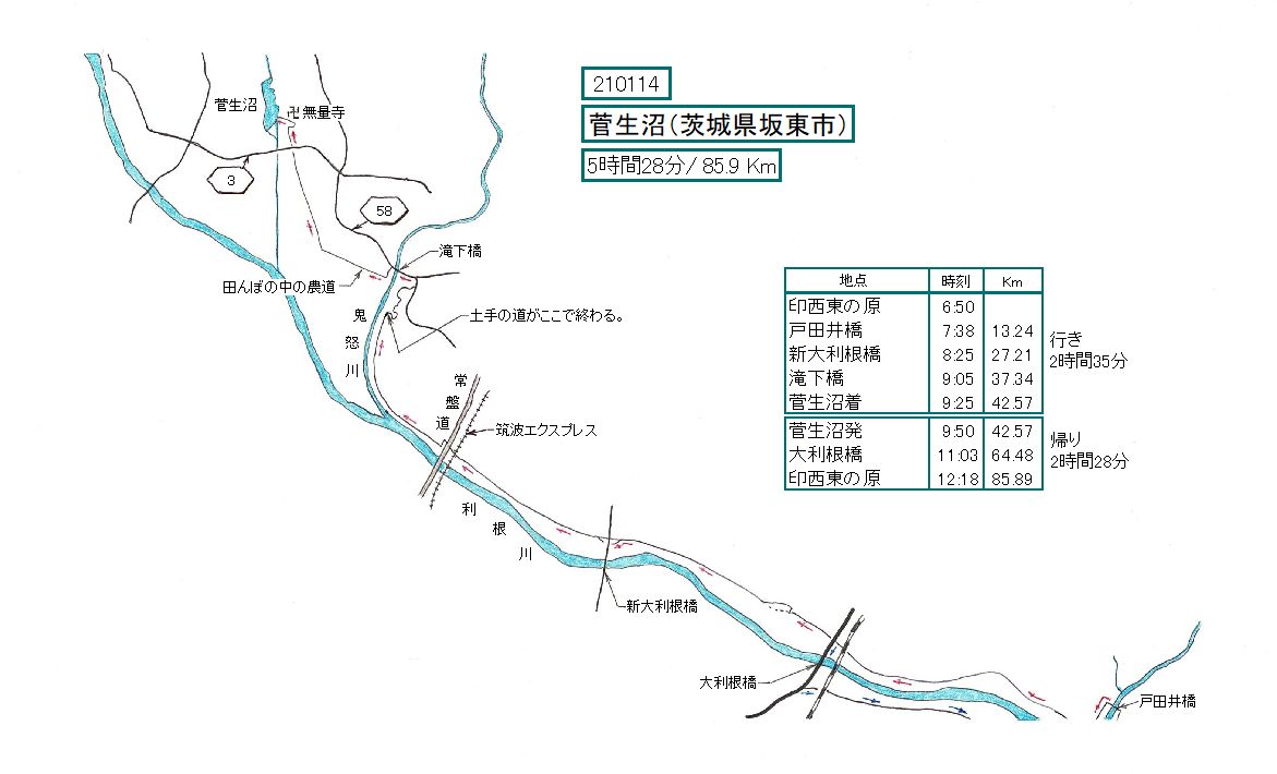 帰りは、国道6号の利根川橋までは往路と同じ。ここで右岸に渡って帰ってきました。利根川橋を渡るか