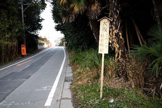 上記の小道は、やがて車道に突き当たります。左折して坂を登って行きます。「大坂・これより旧若柴宿」