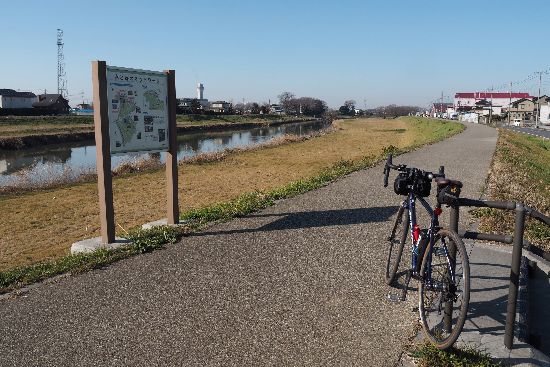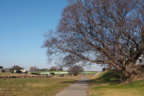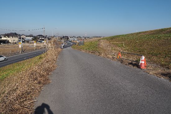 ここは弥生橋を渡り、古利根川の土手に出たところです。この先で土手から河川敷に下ります。