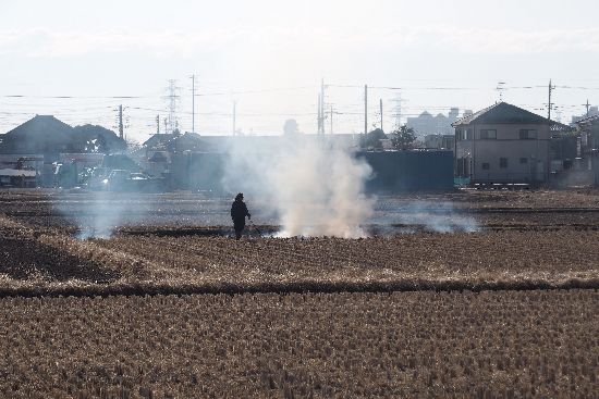 田んぼを焼いていました。ここだけでなく、この日はあちこちで焼いていたので、そういう時期なんでしょう。