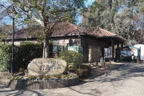野鳥の森は、長さ100m、巾40mくらいの区画に大きな網を被せた構造です。中で一部の鳥は放し飼いと