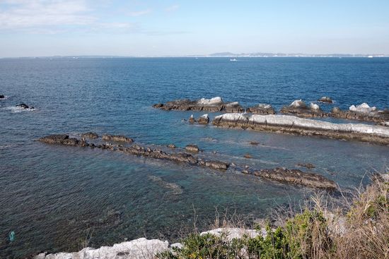 さて、江月水仙ロードから保田に出て、また走りずらい国道127号で金谷港に向かいます。遠くに三浦半島