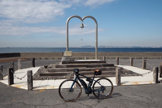 最後は、フェリーターミナルの駐車場端にある「恋人の鐘」の前で記念撮影。