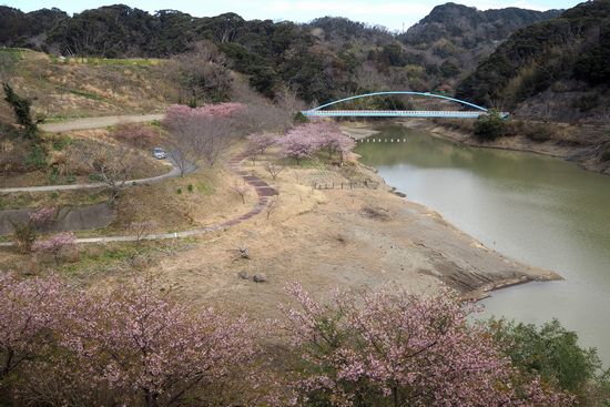 佐久間ダムに着きました。ここも水仙と河津桜が多くあります。