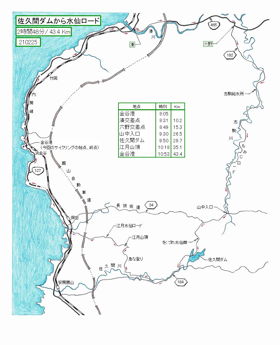 佐久間ダム、江月水仙ロードから保田に出て、金谷港に戻るルートをとりました。水仙や河津桜を眺めて楽しめたサイク