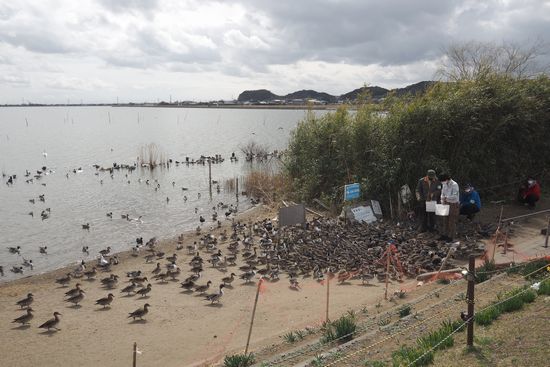 ここは白鳥の里という所です。白鳥はいませんでしたが、凄い数の鴨の類が、餌をやる係員の周りに