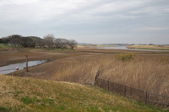 同じ位置から水神岬公園(樹木のある所)と小貝川上流方向を撮っています。通常はここは岡堰の