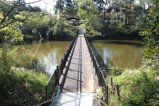 橋で原田池を渡って、さとにわ耕園の対岸の遊歩道で駐輪場に戻りました。