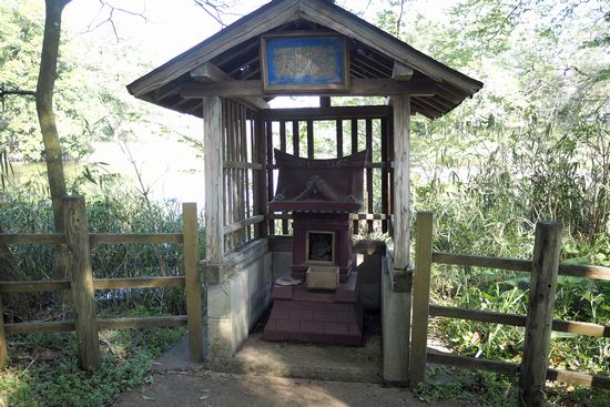 原田池のほとりにある弁財天。祠の中に小さな弁天様がいますが、豊満な胸をしていらっしゃい