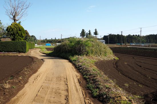 御成街道から急坂を越えて台地の上に出ます。画面中央のドームは、私の好きな古墳ではなく、ハナ