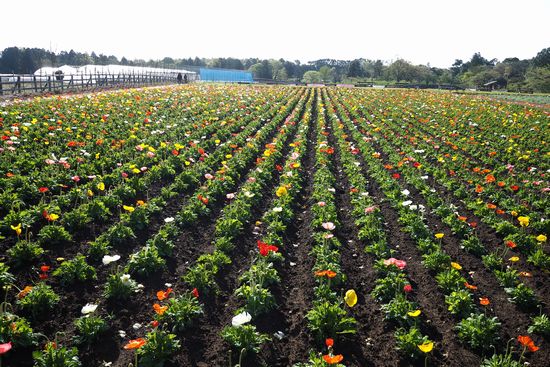 綺麗に整えられたポピー畑。