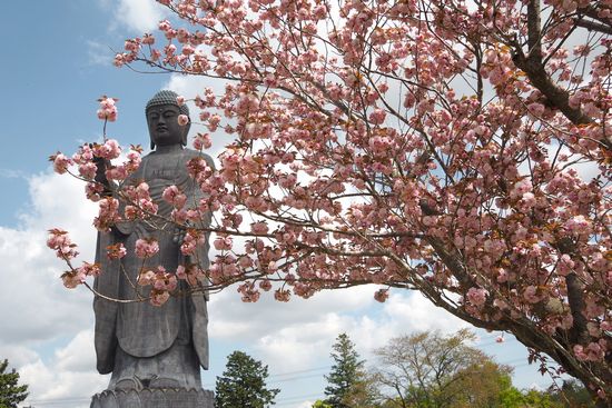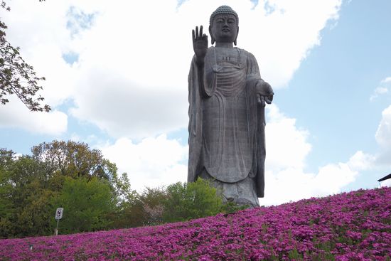 芝さくらを入れて大仏様を撮ってみました。