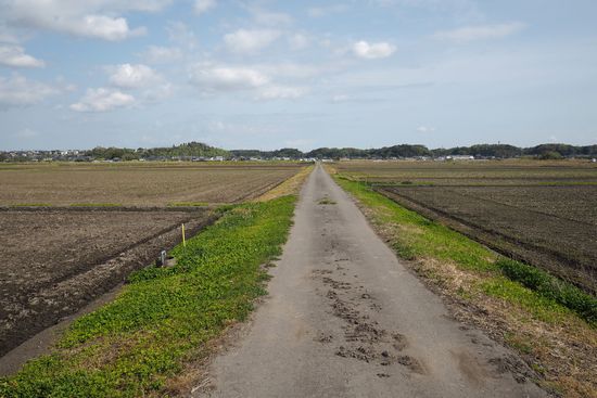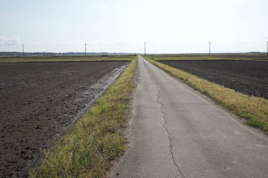 若草大橋からR68(新道)を来て、大正堀川を渡って農道を右折します。写真は地図B地点から。