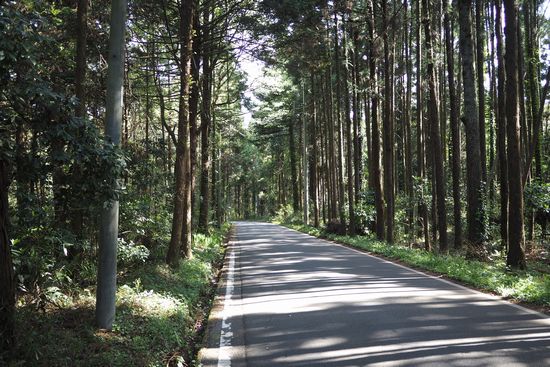 オカモトの横を通り、道は山林の中を北上します。地図D地点。