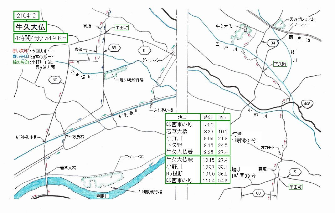 今回、半田町交差点に至るルートを変えてみました。従来は万歳橋、竜ケ崎飛行場を経由するR68(旧道)