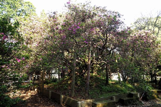 この大きな塊が一本のつつじです。今は二分咲きですが、満開時は素晴らしいことでしょう。