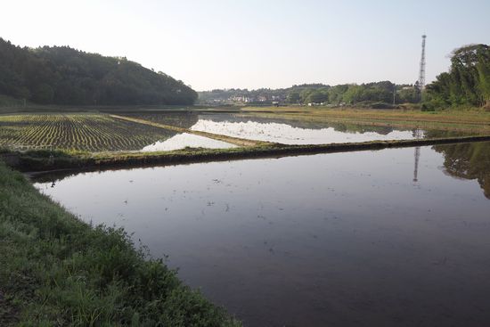 成田駅から根木名川谷津道を進みます。もう田植えの済んだ田んぼもありました。