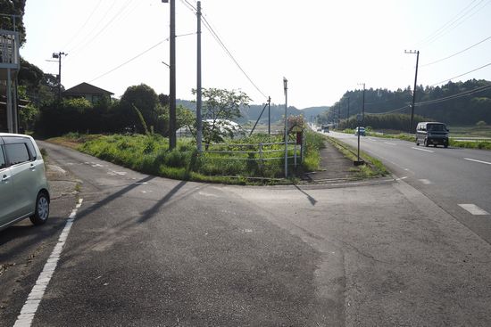 ここは県道45号の日吉郵便局から1.6キロ来た地点です。ここで農道に左折して国道296号に向かいます。