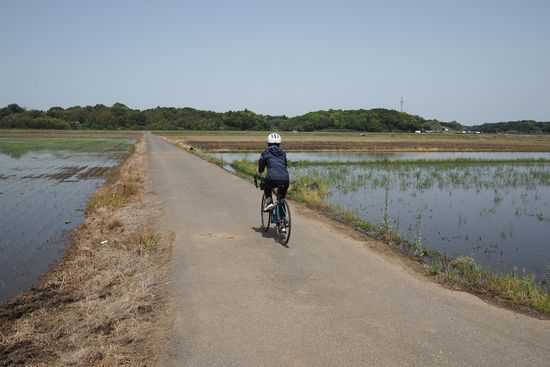 田んぼの中の農道をジグザグに通過します。