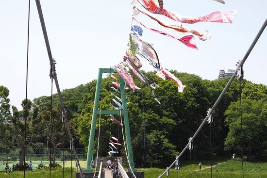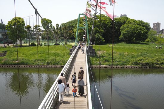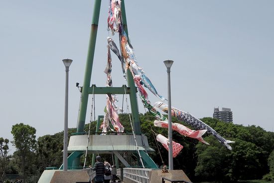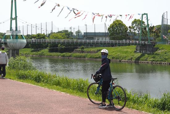 出かける予定は無かったのですが、急に思い立って、新川のゆらゆら橋の鯉のぼりを見てきました。