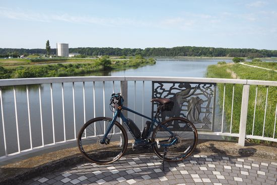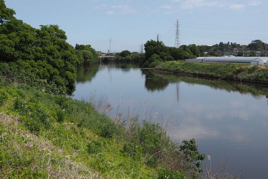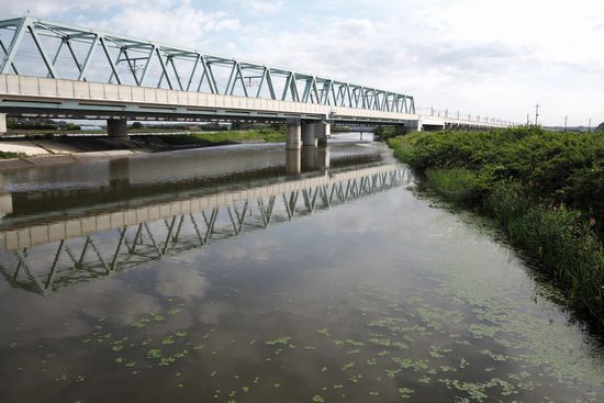 道はやがて印旛沼捷水路のあんのう橋に達します。鉄橋は成田スカイアクセス線です。