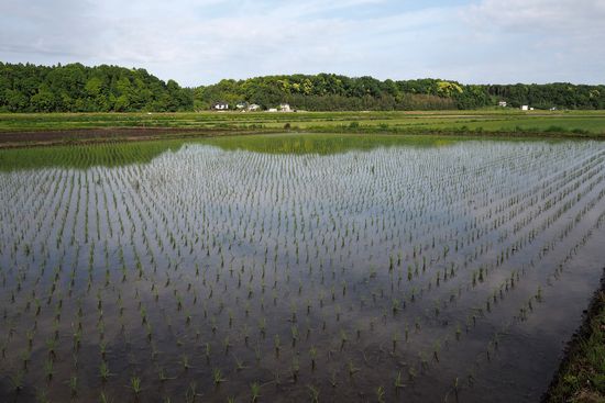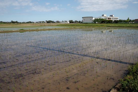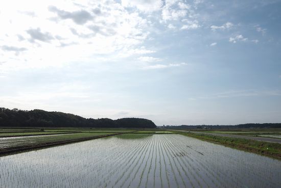 私は水の張られた水田を眺めるのが好きです。田植えの前後の、限られた期間しか見られないというのも