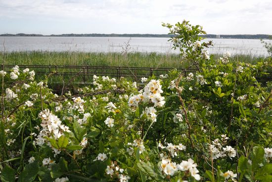 ここは旧国道464を渡ったあたりの北印旛沼畔です。ここからふなと橋まで、白いノイバラ(野茨)の群落が