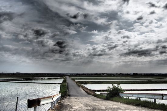 萩原干拓地の広々した風景。(コントラストを強めています。)
