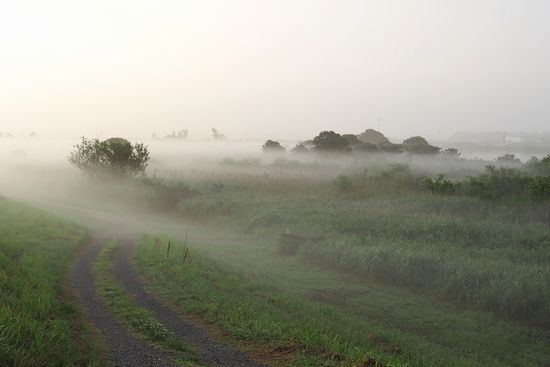 早朝出発すると、色々な気象現象を目にする機会が多いようです。これは若草大橋を渡り、利根川